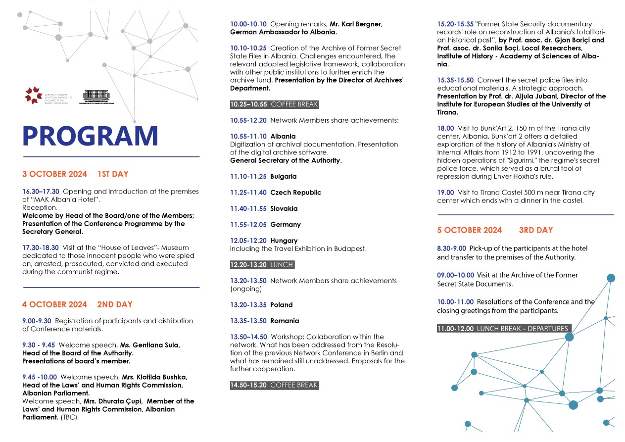 The annual conference "Common vision-synergizing actions" 3-5 October 2024 was hosted by the Albanian Authority for Information on Former State Security Documents (AIDSSH)